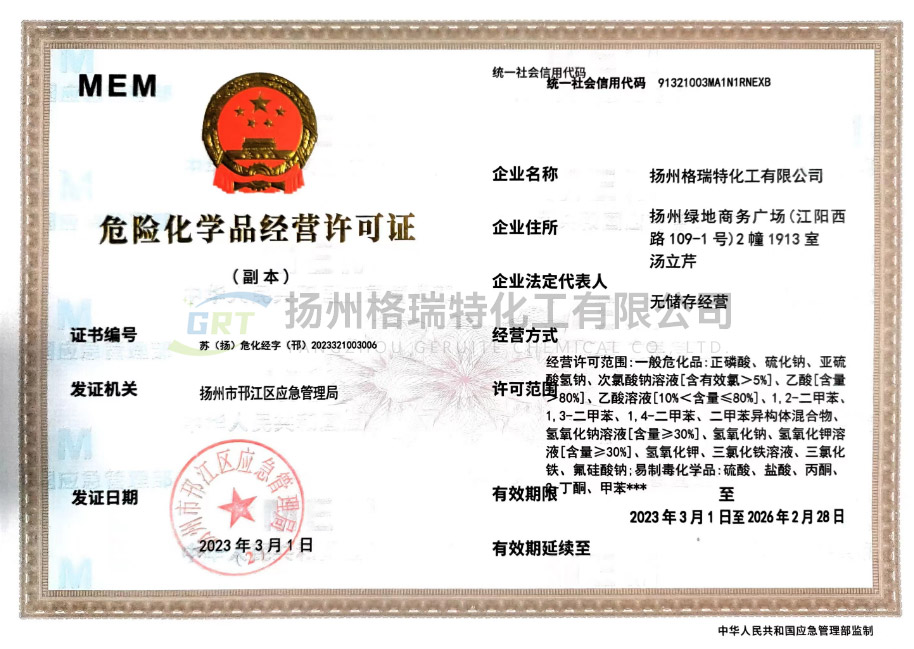 揚州格瑞特化工有限公司生產工廠坐落于江蘇省海安縣胡集工業園區和海安精細化工工業園。總公司成立于1999年,是集科、工、貿為一體的現代化生產型企業。專業致力于水處理劑、紡織印染助劑、化纖油劑等產品的科研、開發、生產和銷售。總公司占地面積40000m,建有現代化標準廠房,擁有先進的生產設備。年產各類水處理劑系列產品12000噸,紡織印染助劑5000噸,產品12個系列40多個品種??偣咀⒅丶夹g投入,設立產品研發中心和環保運營中心,聘請了多位專家為公司技術顧問,并和多個重點院校建立了長期技術合作開發關系,是南通大學、江南大學、南京工業大學產學研基地。